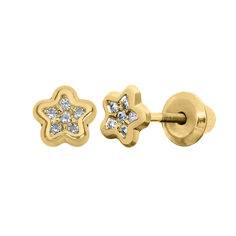 Children's Lab Created White Cubic Zirconia Star Earrings in 14K Yellow Gold